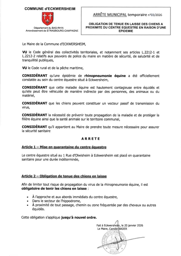 MESURES SANITAIRES – EPIDEMIE DE RHINOPNEUMONIE EQUINE